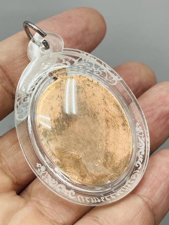 เจริญพรบนรุ่นเเรก เนื้อทองเเดง หลังเรียบ ตอกเเจกในพิธี พร้อมเลี่ยม กล่องเดิมครบ เลข 523
