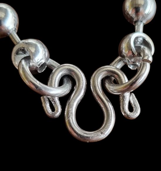++ สร้อยคอแสตนเลสงานเก่า ตราลูกศร ลายเม็ดไข่ปลาใหญ่ ยาวตลอดเส้น 28 นิ้ว ++
