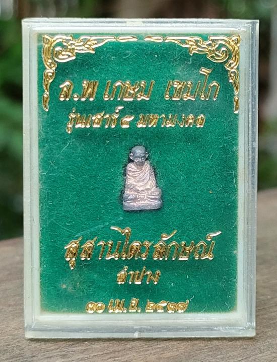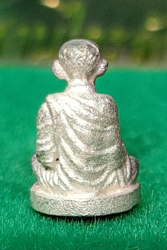 รูปหล่อหลวงพ่อเกษม เขมโก พิมพ์จิ๋ว เนื้อเงิน พร้อมกล่องเดิม ตอกโค๊ดเลข ๕ ใต้ฐาน