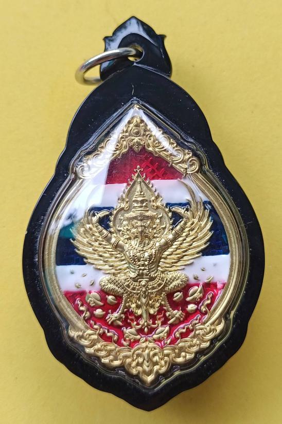 พญาครุฑดวงเศรษฐี ลพ.รวย วัดมาบตาพุด ระยอง รุ่นดวงเศรษฐีปี๖๖ เนื้อทองทิพย์ลงยาธงชาติ