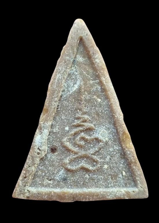 พระผงเนื้อแก่น้ำมันพิมพ์สามเหลี่ยม หลังยันต์เฑาะว์ พระชุดบ่อวิน หลวงปู่ทิมปลุกเสก