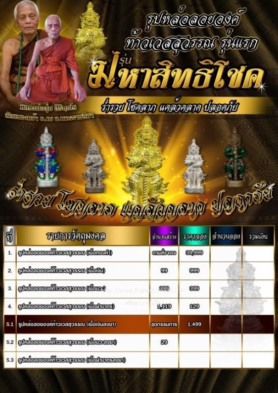 แบ่งปันรูปหล่อลอยองค์ ท้าวเวสสุวรรณ รุ่นแรก มหาสิทธิโชค หลวงพ่อสุ่ม สิรินฺธโร วัดหนองหว้า อ.คง จ.นครราชสีมา เนื้อนวะ สร้าง399องค์ ราคาจอง399บาท รวม 3 องค์ ซีนเดิมๆลุ้นหมายเลขเทพๆ แท้ทันประกันให้