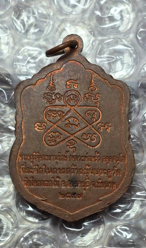 เหรียญเสมาซุ้มประตู หลวงพ่อพร้า ปี47เนื้อทองแดง