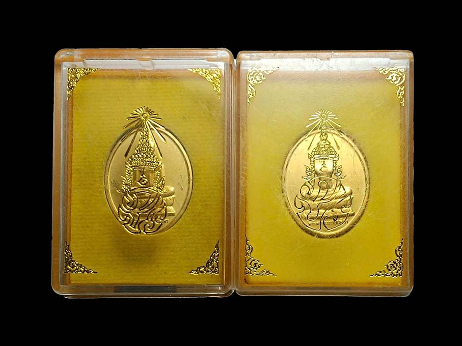 จำนวน 2 องค์ เหรียญพระพุทธนวราชบพิตร หลัง ภปร. วัดบวร ปี 2529 พิธี พระกริ่งปวเรศปี 30 กล่องเดิม