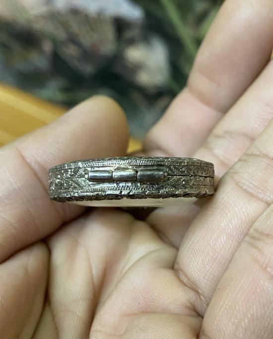 ตลับเงินเเกะลายมือสอง ขนาด 2.3X2.3 ซ.ม. น้ำหนัก 12.8 กรัม สภาพใช้งานได้ปกติครับ