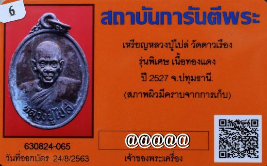 *** เคาะเดียวแดง ทุกรายการ *** เหรียญหลวงปู่ไปล่ วัดดาวเรือง รุ่นพิเศษ เนื้อทองแดง ปี 2527 ปทุมธานี มีบัตรพระแท้การันตีพระ สภาพตามรูป