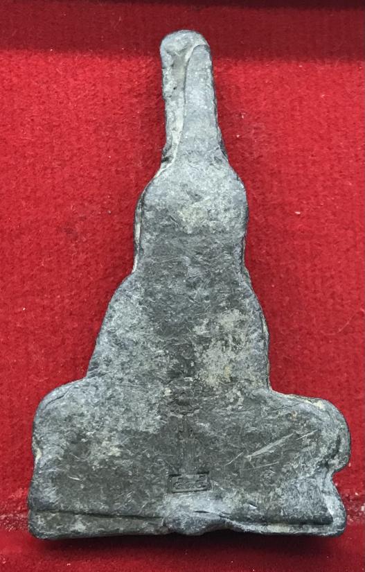 พระท่ากระดานหลังพัดยศ วัดหนองกระทุ่ม เนื้อชินตะกั่ว อ.บ่อพลอย จ.กาญจนบุรี สร้างขึ้นในช่วงปีพ.ศ.2500-2515