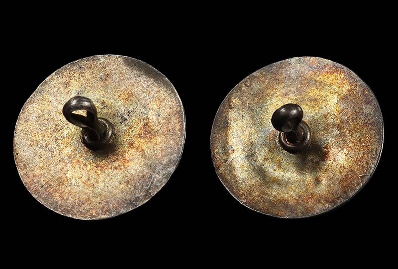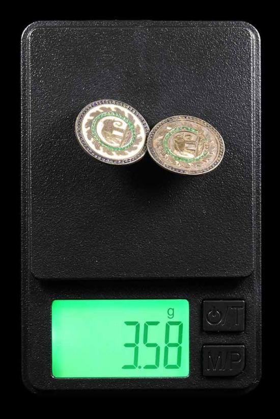 100 / เหรียญกระดุมเนื้อเงินลงยา ช้างจักร..เก่าทั้ง2เหรียญไม่ทราบที่ครับ