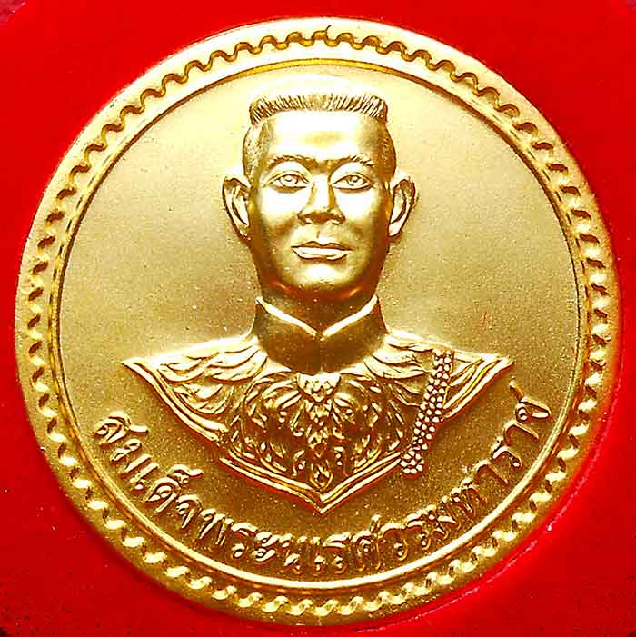ลักษณะเหรียญ: เป็นเหรียญกลม ด้านหน้าเป็นพระรูปสมเด็จพระนเรศวรมหาราช