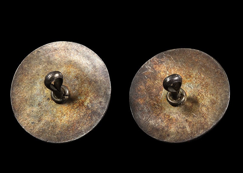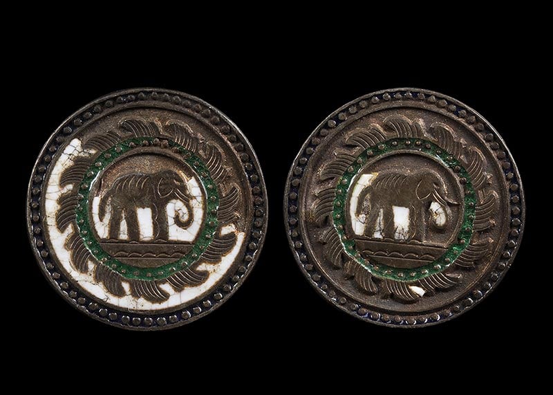 100 / เหรียญกระดุมเนื้อเงินลงยา ช้างจักร..เก่าทั้ง2เหรียญไม่ทราบที่ครับ