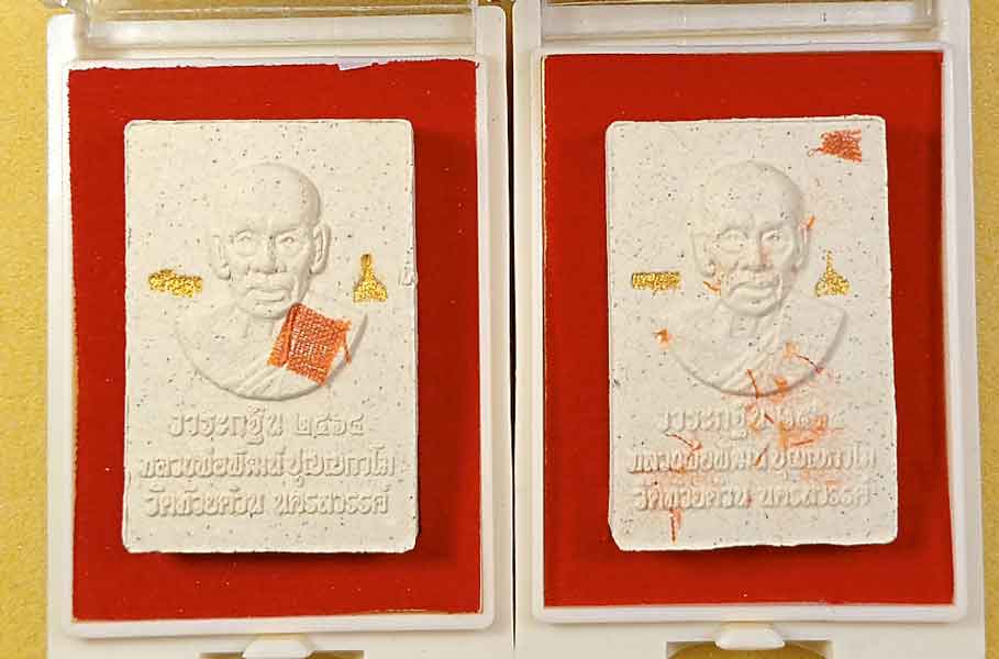 พระสมเด็จผงงาช้าง หลวงพ่อพัฒน์ วัดห้วยด้วน วาระกฐินปี2564 เนื้อผงหน้ากากทองเหลืองติดจีวร 2 องค์