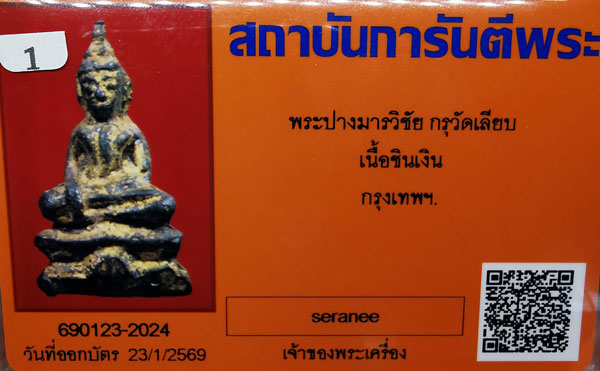 พระปางมารวิชัย กรุวัดเลียบ เนื้อชินเงิน จ.กรุงเทพฯ + บัตรG-pra สภาพเดิมค่ะ