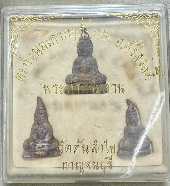 พระท่ากระดานวัดต้นลำใย จ.กาญจนบุรี เนื้อตะกั่วสนิมแดงกรุศรีสวัสดิ์ สภาพสวยพร้อมกล่องเดิมครบชุด 3 พิมพ์ พระเหมาบ้านมาลงวัดใจค่ะ รับประกันตามกฎค่ะ