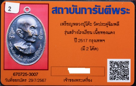 ูเหรียญหลวงปู่โต๊ะ รุ่นสร้างโรงเรียน เนื้อทองแดง มี 2 โค้ด