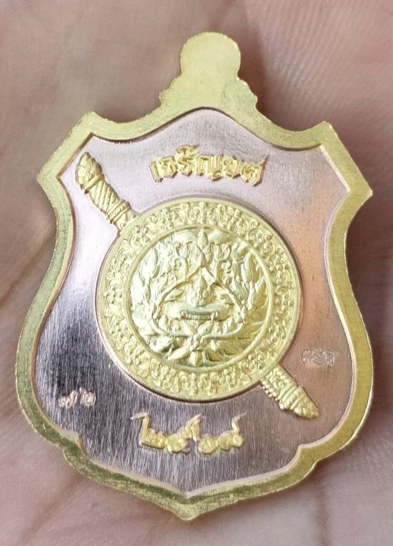 เหรียญหลวงพ่อโต รุ่น"เจริญยศ"ประวัติศาสตร์ตำรวจ๒๕๖๘ วัดบางพลีใหญ่ใน จ.สมุทรปราการ พิมพ์เหรียญอาร์ม เนื้อชุบทองพื้นนาค หมายเลข ๗๒ พร้อมกล่อง เหรียญสวยมากคับ