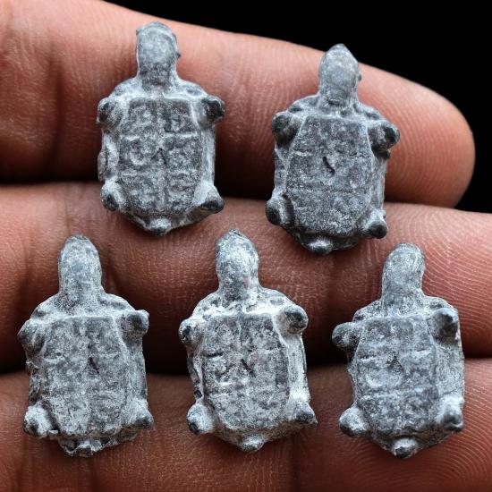 ชุด 5 องค์...เต่าจิ๋วตะหลิวหัก เนื้อแร่ตะกั่ว ปี 2558 พระครูน้อย วัดชัยมงคล จ.สุพรรณบุรี พร้อมซองใบยันต์เดิมจากวัด