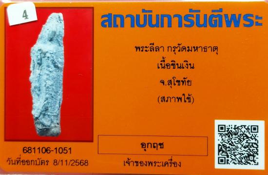 พระลีลา กรุวัดมหาธาตุ เนื้อชินเงิน จ.สุโขทัย พร้อมบัตรรับรองจากจีพระ
