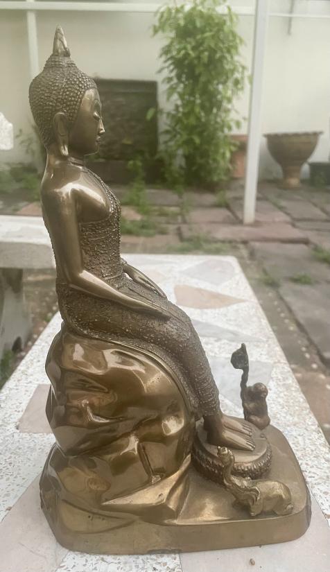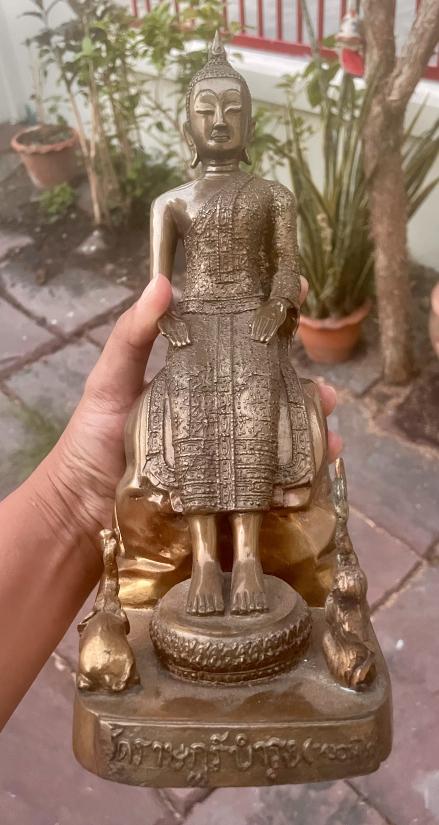 ขนาดสูง 11 นิ้ว ฐานกว้าง 4 นิ้ว เนื้อเหลืองหนา ๆ จีวีดอก งานศิลปละเอียด ปราณีต หล่อได้เข้มขลังสวยมากๆ ครับ สำหรับท่านที่สนใจครับ