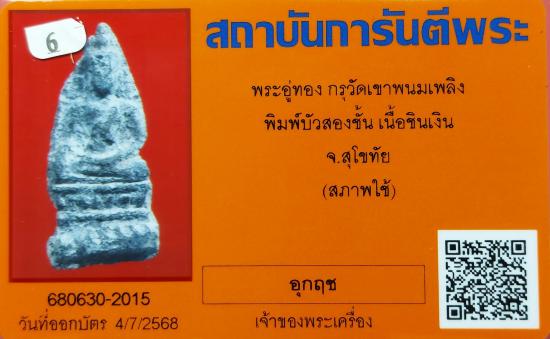 พระอู่ทอง กรุวัดเขาพนมเพลิง พิมพ์บัวสองชั้น เนื้อชินเงิน จ.สุโขทัย พร้อมบัตรรับรองจากจีพระ