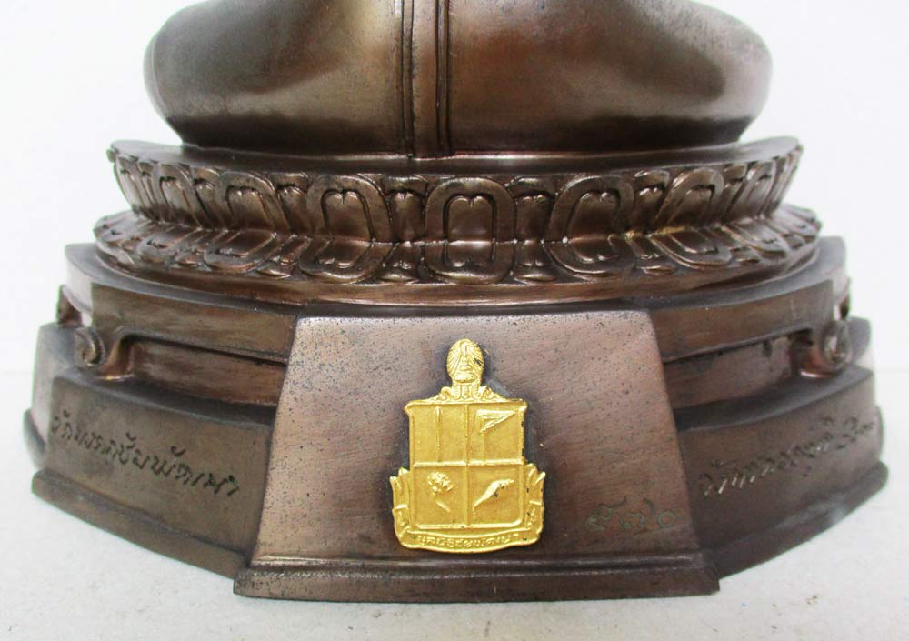 พระพุทธนิรโรคันตรายชัยวัฒน์จตุรทิศ วัดมงคลชัยพัฒนา จ.สระบุรี มูลนิธิชัยพัฒนา พ.ศ.2539 หน้าตัก 6 นิ้ว ฐานมีตราภปร. เนื้อโลหะรมมันปูผิวหิ้ง !!