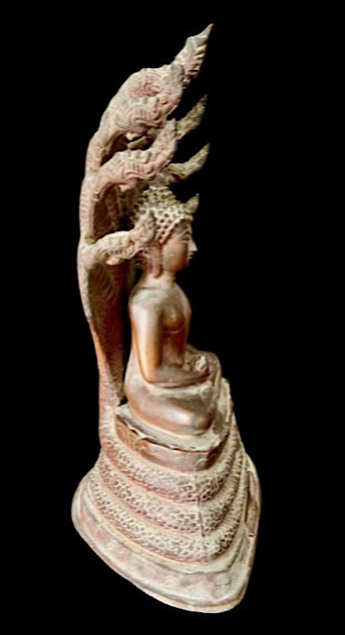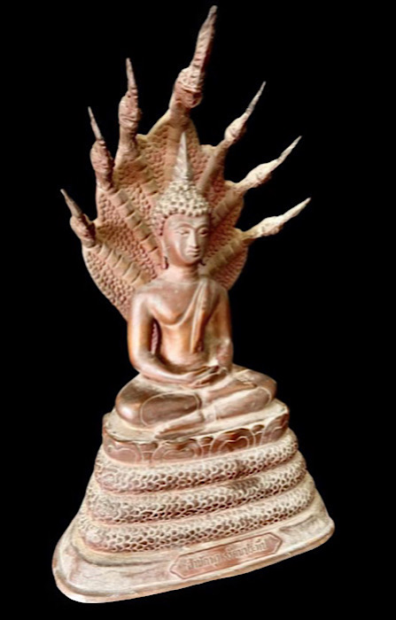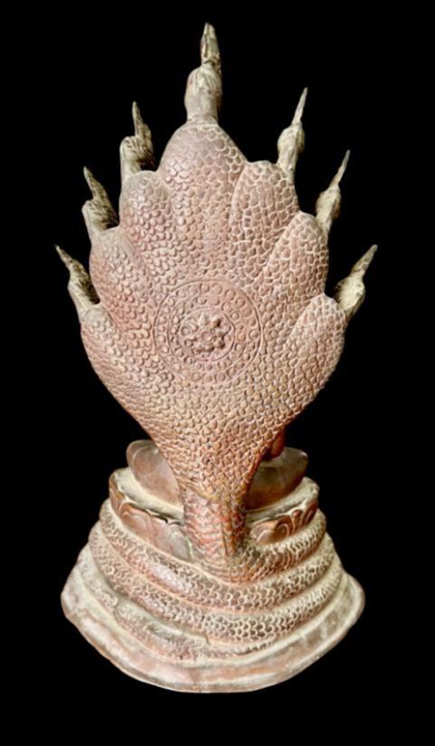 พระบูชาปางพระนาคปรก พิธี 25 ศตวรรษ สำนักพุทธรัตนประทีป เนื้อโลหะผิวสีแดงมันเทศ ถึงยุค หล่อหนา ก้นดินไทยสวยๆ ใต้ฐานปิดทับด้วยปูน ผิวเดิม หิ้งสุดๆ สวยมากๆ