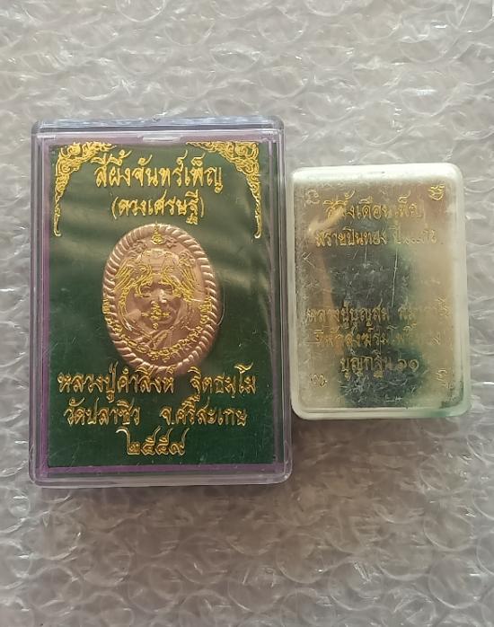สีผึ้งจันทร์เพ็ญ (ดวงเศรษฐี) หลวงปู่คำสิงห์ ฐิตธัมโม ปี 2559 วัดปลาซิว จ.ศรีสะเกษ+สีผึ้งเดือนเพ็ญ พรายปิ่นทองปิ่นแก้ว หลวงปู่บุญสม ที่พักสงฆ์ร่มโพธิ์ทอง อำเภอบ่อทอง จังหวัดชลบุรี