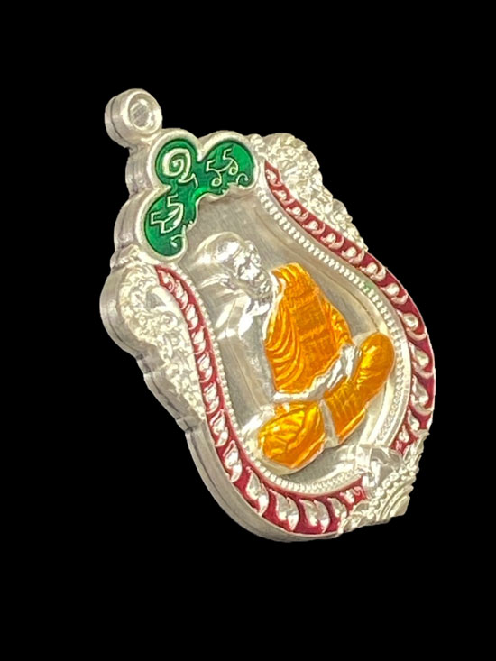 เหรียญเสมา ครบ ๘ รอบ ๙๖ ปี หลวงปู่โฉม อรุโณ วัดอัมภาราม จังหวัด บุรีรัมย์ ๒๕๖๗ เนื้อเงิน ปะฉลุ ๓ ชิ้น ลงยา ๓ สี หัวเขียว ขอบแดง องค์ลงยาจีวร หมายเลข ๖๒
