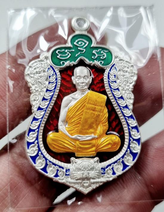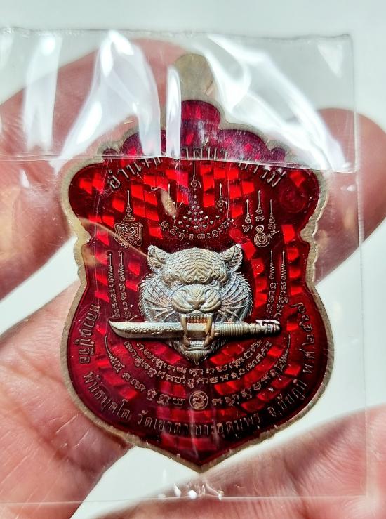 เสมาเสือคาบดาบ หลวงปู่จื่อ เนื้อนวะลงยาขอบเงิน องค์เงิน หมายเลข94