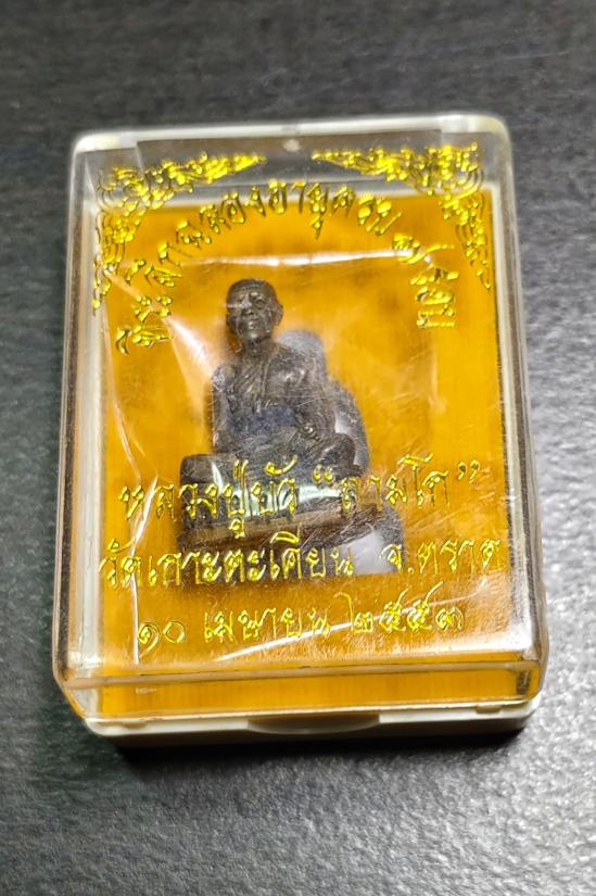 รูปหล่อ 7 รอบ เนื้อนวโลหะ ก้นทองแดง หลวงปู่บัว ถามโก ปี 2553 *ตอกโค้ด "บ" "นะ" ตอกหมายเลข 207