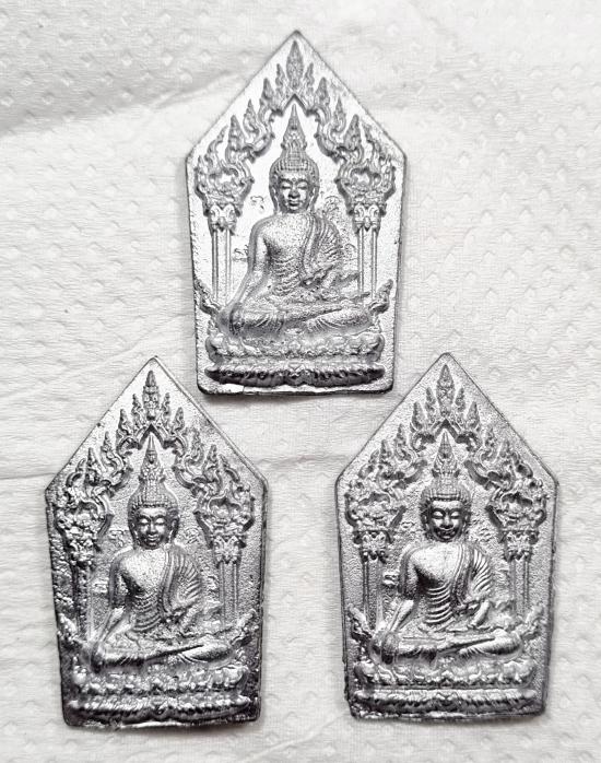 พระขุนเเผน แรงครู พลิกชีวิต พระอาจารย์แจ้ วัดน้อมประชาสรรค์ เหรียญหล่อตะกั่วมหายันต์ 3องค์ ไม่มีกล่อง (D) |