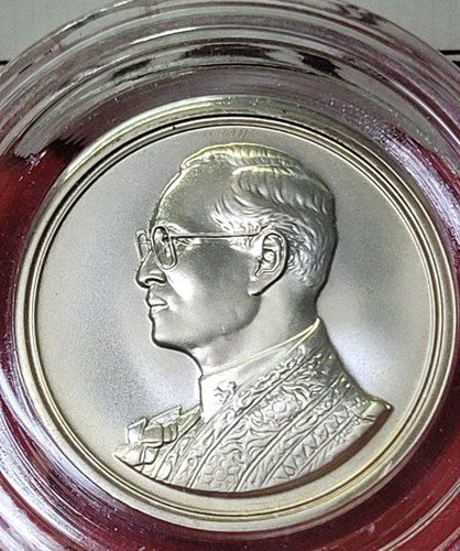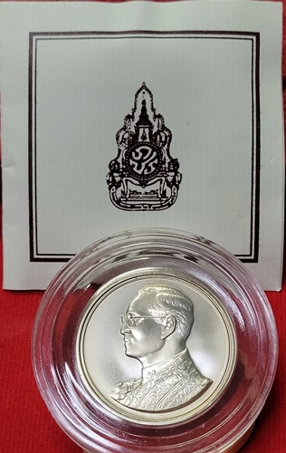 เหรียญเนื้อเงินพ่นทราย ในหลวง ร.9 สภาพสวย มีเอกสารเหรียญพร้อม