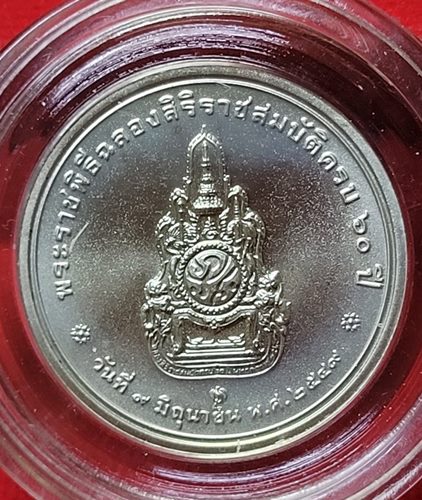 เหรียญที่ระลึกเนื้อเงินพ่นทราย ในหลวง ร.9 ฉลองสิริราชสมบัติครบ 60ปี พ.ศ.2549