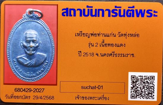 เหรียญพ่อท่านแก่น วัดทุ่งหล่อ จ.นครศรีธรรมราช เนื้อทองแดง ปี2518 จ.นครศรีธรรมราช |