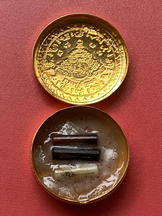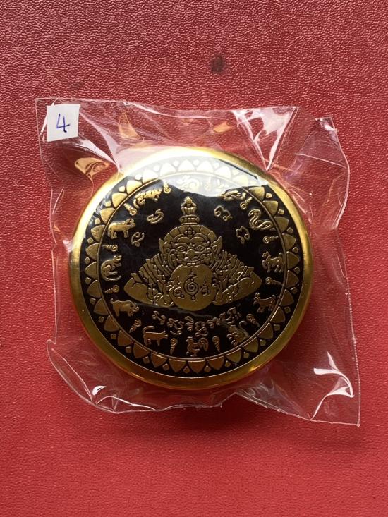 เคาะเดียวแดง สีผึ้งพระราหู รุ่น มงคลจักรวาล เนื้อ โลหะชุบทองลงยาสีดำขอบสีดำ ขนาด 5ซม