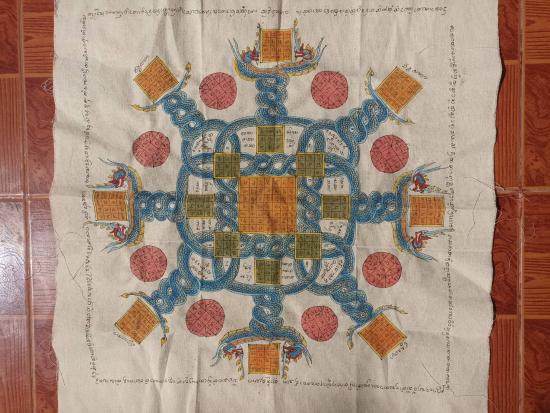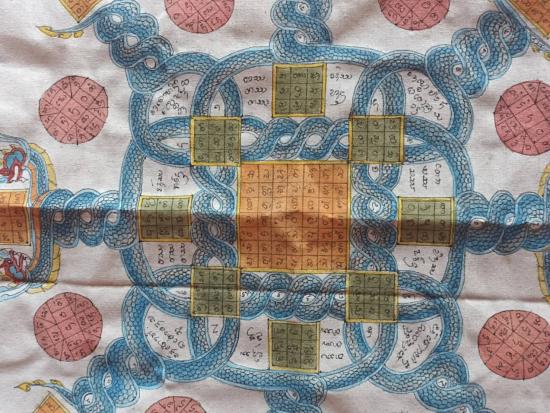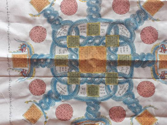 ผ้ายันต์นาคเกี้ยว เมตตา มหาลาภ สุดยอดงานพุทธศิลป์ ยุคใหม่ ลงสงาม มนต์เสน่ห์แห่งเครื่องราง งานเขียนมือ ล้วนๆ ขนาด 59*54 ซม. ***