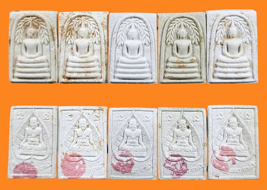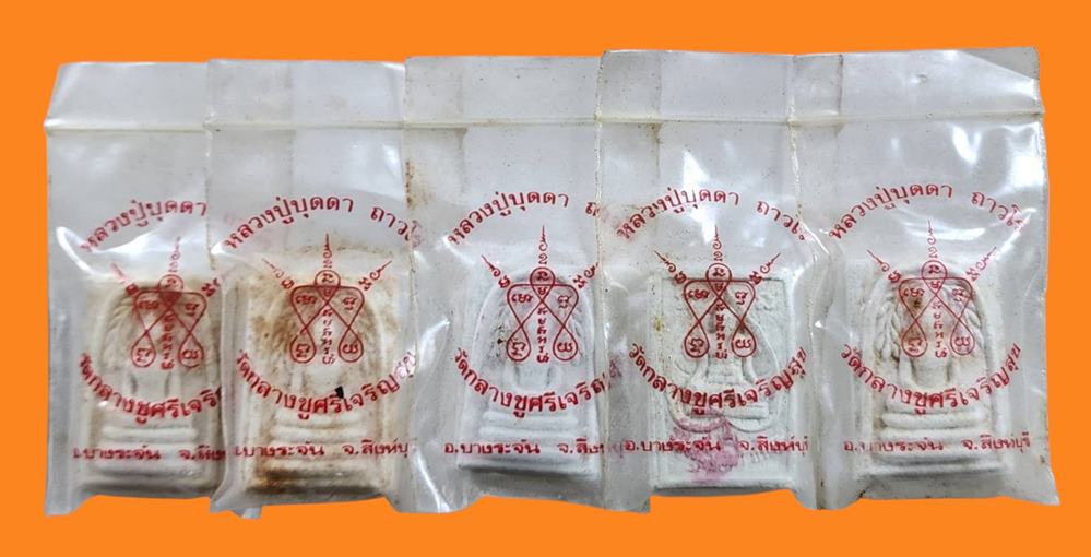 พระสมเด็จปรกโพธิ์หลังรูปเหมือนนั่งใบโพธิ์หลวงปู่บุดดา ถาวโร วัดกลางชูศรีฯ จ.สิงห์บุรี สภาพสวยซองเดิมๆครับ ( 5 องค์ )
