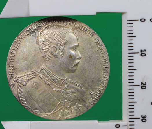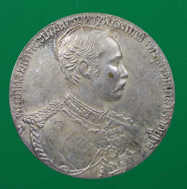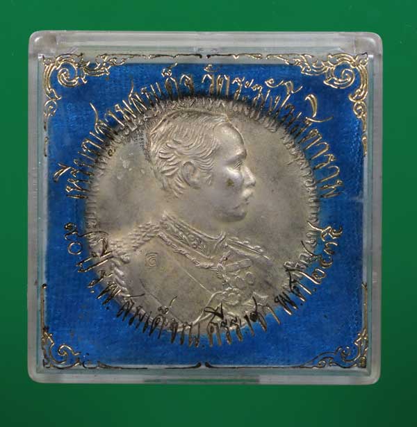 วัดใจ...เหรียญรัชกาลที่ 5 (สามสมเด็จ) รุ่น 90 ปี ร.พ.สมเด็จ ณ ศรีราชา จ.ชลบุรี ปี35 เนื้อเงิน (หนัก 15.6 กรัม)