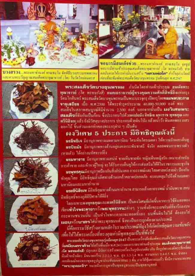 นอกจากนี้ยังมีพระสารีริกธาตุ พระธาตุต่างๆ และวัตถุอาถรรพณ์ผสมมากมาย ทั้งไม้มงคล ไม้กาฝาก ดินโป่ง และน้ำมนต์ศักดิ์สิทธิ์จากวัดทั่วประเทศ เปิดตำนาน สร้างพระสมเด็จบางขุนพรหม รุ่นย้อนยุค 2547 ขึ้นชื่อว่า พระสมเด็จ ของท่านเจ้าประคุณสมเด็จพระพุฒาจารย์ (โต พรหมรังสี) แล้วนับได้ว่าเป็นสุดยอดแห่งพระเครื่อง เพราะมีทั้งพุทธานุภาพและอิทธิปาฏิหาริย์เหนือว่าคณาจารย์ใด ๆ ทั้งหมด ทรงอิทธิฤกษ์สารพัดอย่างสามารถป้องกันสรรพอันตรายทั้งหลายทั้งปวง ป้องกันภัยพิบัตินานาชนิด มีอิทธิคุณครบเครื่องทุกด้าน อาทิเช่น คงกระพันชาตรี แคล้วคลาดปลอดภัย เมตตามหานิยม รวมทั้งแสวงหาโชคลาภ ก็ประเสริฐสุดยิ่งนัก จะเรียกว่า "ยอดพระเครื่อง" หรือ "จักรพรรดิพระเครื่อง" ก็เห็นจะไม่ผิด เพราะบรรดานักเลงพระเครื่องมักจะกล่าวกันในทำนองนี้เสมอ