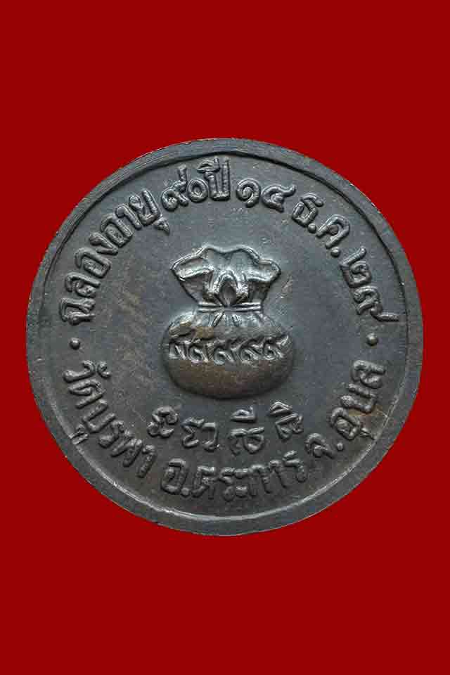 เหรียญขวัญถุง ฉลองอายุ90ปี พระครูพิศาลสังฆกิจ (หลวงปู่โทน) วัดบูรพา จ.อุบลฯ ปี 2529 |
