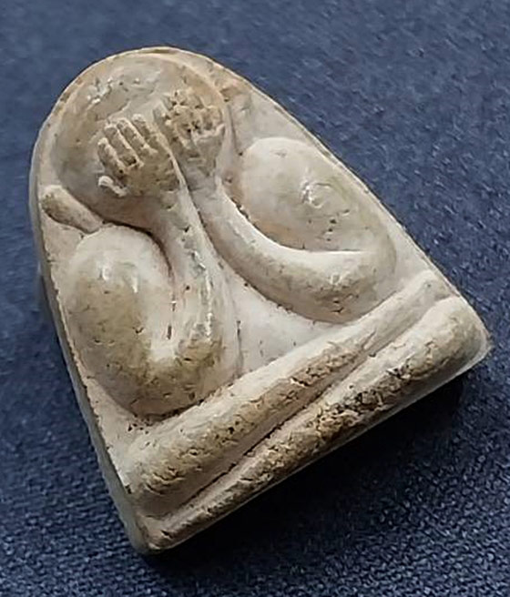 พระปิดตาหลวงปู่เฮี้ยง วัดป่าฯ พิมพ์หลังพระสังกัจจายน์ เนื้อผง ปี2505