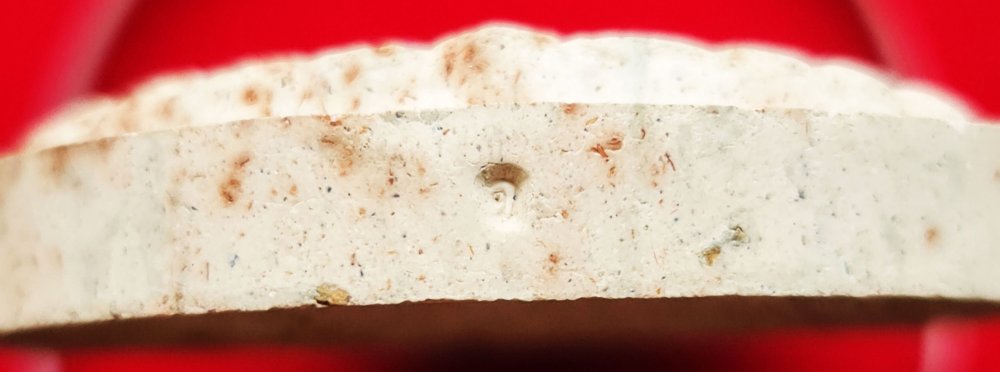 ลักษณะเป็นทรงรูปไข่ขนาด 5.7 ซม. ด้านหน้าเป็นองค์ ท้าวจตุคามประทับนั่งในท่ามหาราชลีลา
