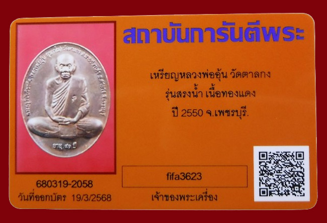 แดงที่เคาะแรก !!! เหรียญรุ่นสรงน้ำ พิมพ์ใหญ่ หลวงพ่ออุ้น วัดตาลกง ปี2550 + บัตรพระแท้