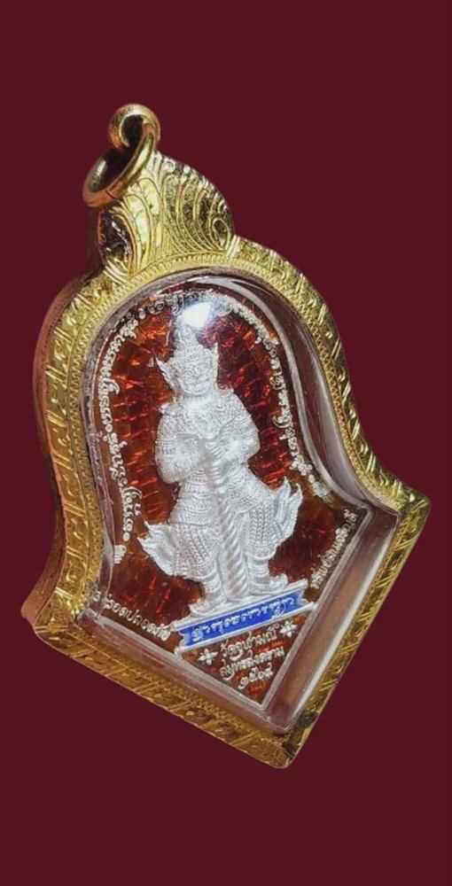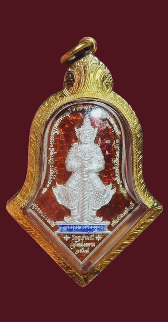 เหรียญจำปีท้าวเวสสุวรรณ เนื้อเงินลงยาแดงสวยแชมป์ๆ รุ่นสำนักงานตำรวจแห่งชาติ ปี64เลี่ยมทองพร้อมใช้ ทอง60-70%