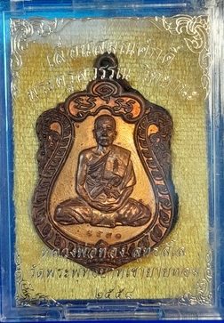 เหรียญเลื่อนสมณศักดิ์ หลวงพ่อทอง วัดพระพุทธบาทเขายายหอม จ.ชัยภูมิ เนื้อทองแดงรมมันปู กล่องเดิมจากวัด |