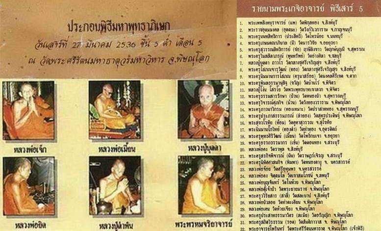ประกอบพิธีมหาพุทธาภิเษก วันเสาร์ที่ 27 มีนาคม 2536 ณ.วิหารพระพุทธชินราช วัดพระศรีรัตนมหาธาติวรมหาวิหาร จ.พิษณุโลก |