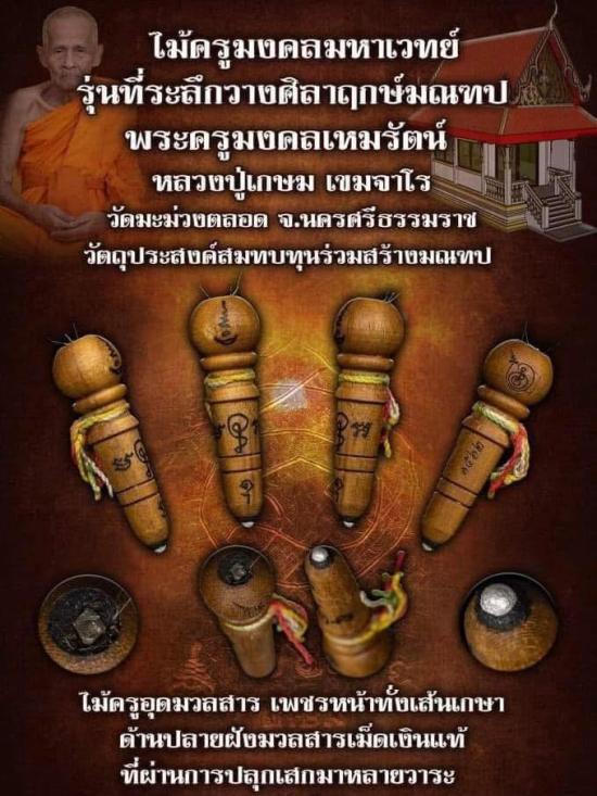 +!!เคาะเดียวllดง ตลอดสาย!!+ (รับ 2 อัน) ไม้ครูมงคลมหาเวทย์ หลวงปู่เกษม วัดมะม่วงตลอด จ.นครศรีธรรมราช ปี65 ขนาดยาว 4.5 ซม. อุดมวลสาร เพชรหน้าทั่งเส้นเกษา ด้านปลายฝังมวลสาร+เม็ดเงินแท้ มีจารและหมายเลขตา |