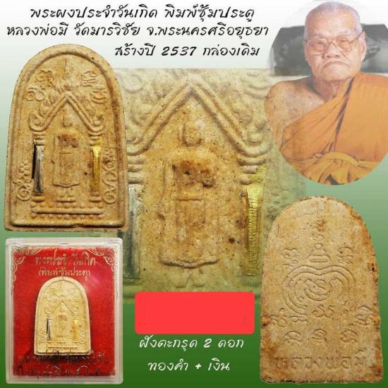 พระผงประจำวันเกิด พิมพ์ซุ้มประตู ตะกรุดทองคำ เงิน หลวงพ่อมี วัดมารวิชัย จ.อยุธยา ปี 2537 สวยพร้อมกล่องเดิมๆจากวัด |
