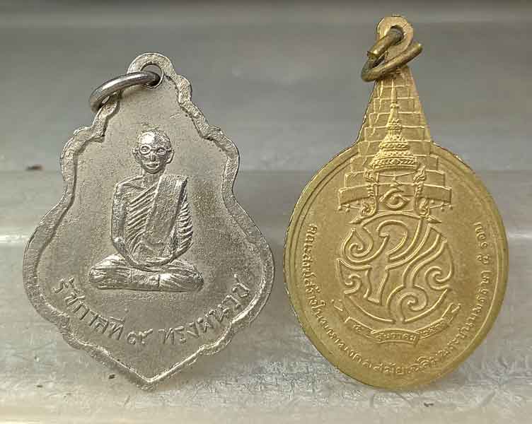 เหรียญวัดชลอ รุ่น ๑ ด้านหลังร.9 ทรงผนวช จ.นนทบุรี ปี 2515 + เหรียญพระชัยหลังช้าง |