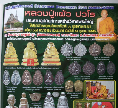 เหรียญปลอดภัย 16จักร ปี2550 หลวงปู่แผ้ว ปวโร วัดเจริญราชบำรุง (หนองพงนก) กำแพงแสน นครปฐม |