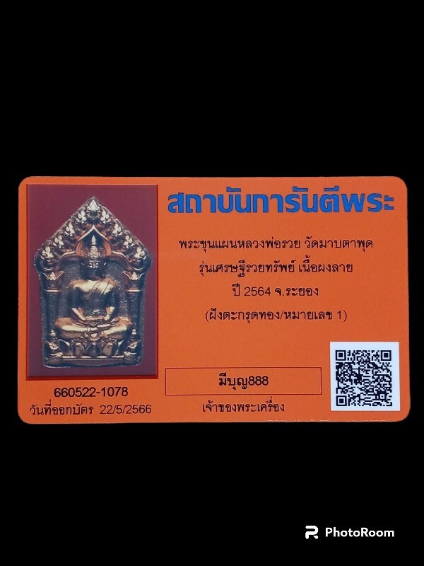 ชื่อพระเครื่อง เศรษฐีรวยทรัพย์ หลวงพ่อรวย วัดมาบตาพุด เนื้อก้นครกฝังตะกรุดทองคำคู่ปัดบรอนซ์ หมายเลข ๑ สวยมากหายากสุดๆค่ะ